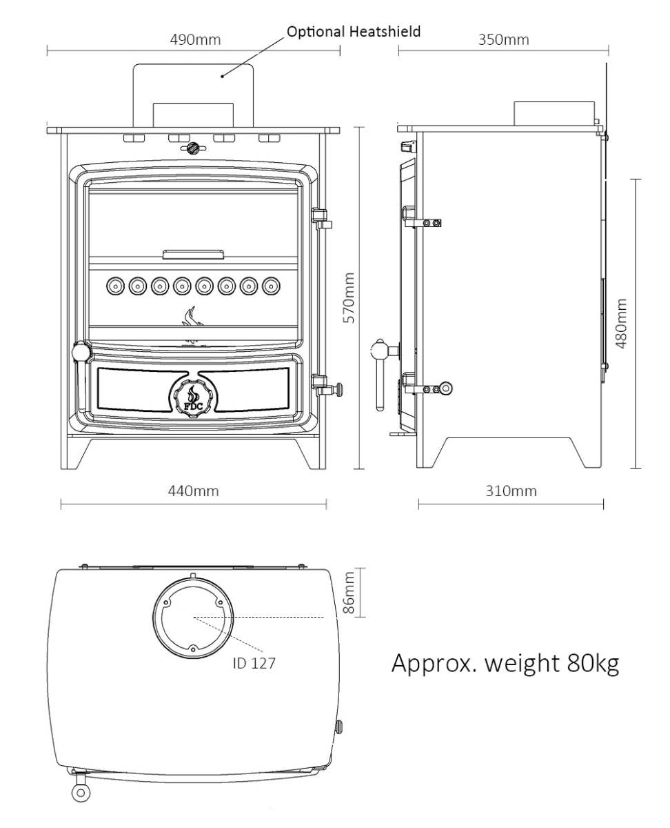 • Efficiency – 81.1% wood, 82.9% smokeless fuel