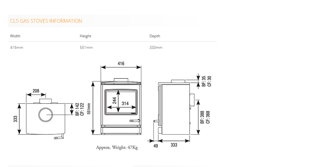 Full Range Here: https://www.stovax.com/stove-fire/cl-gas-stoves/