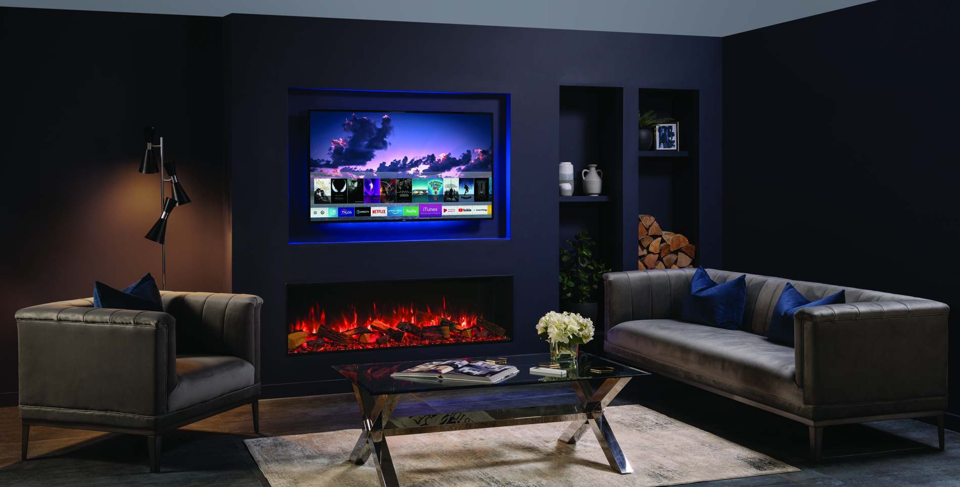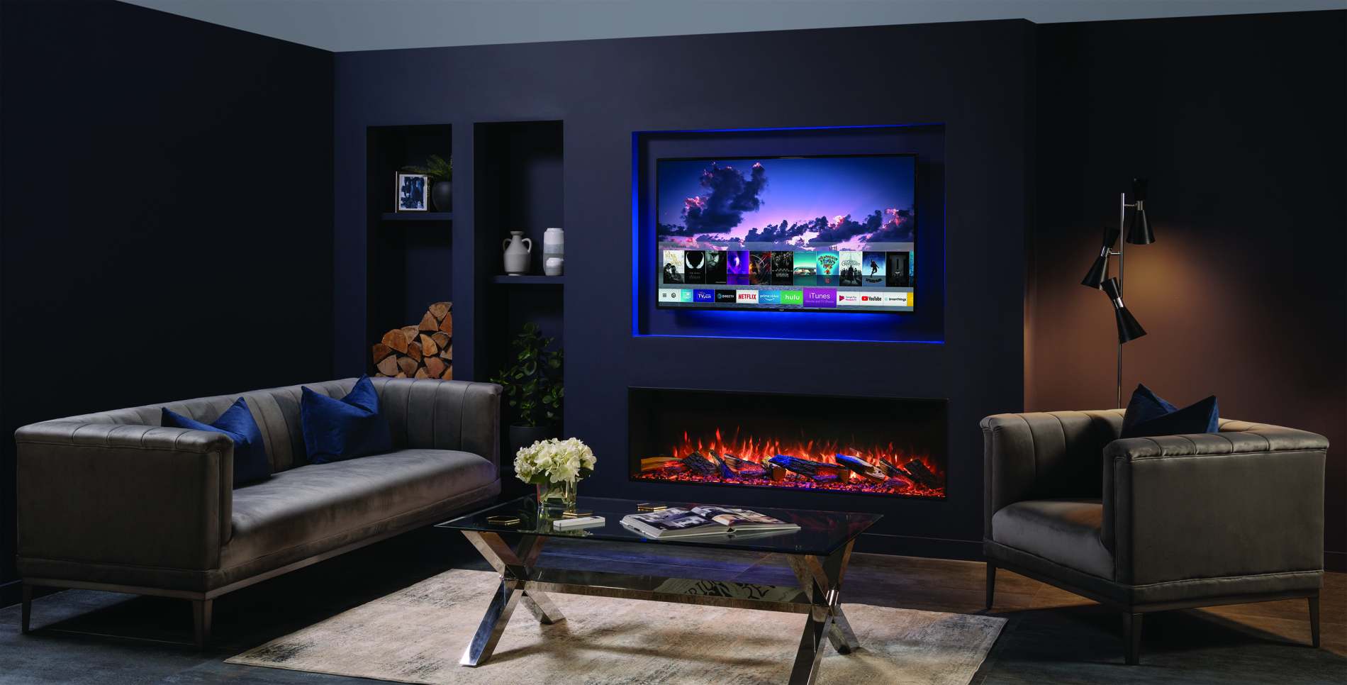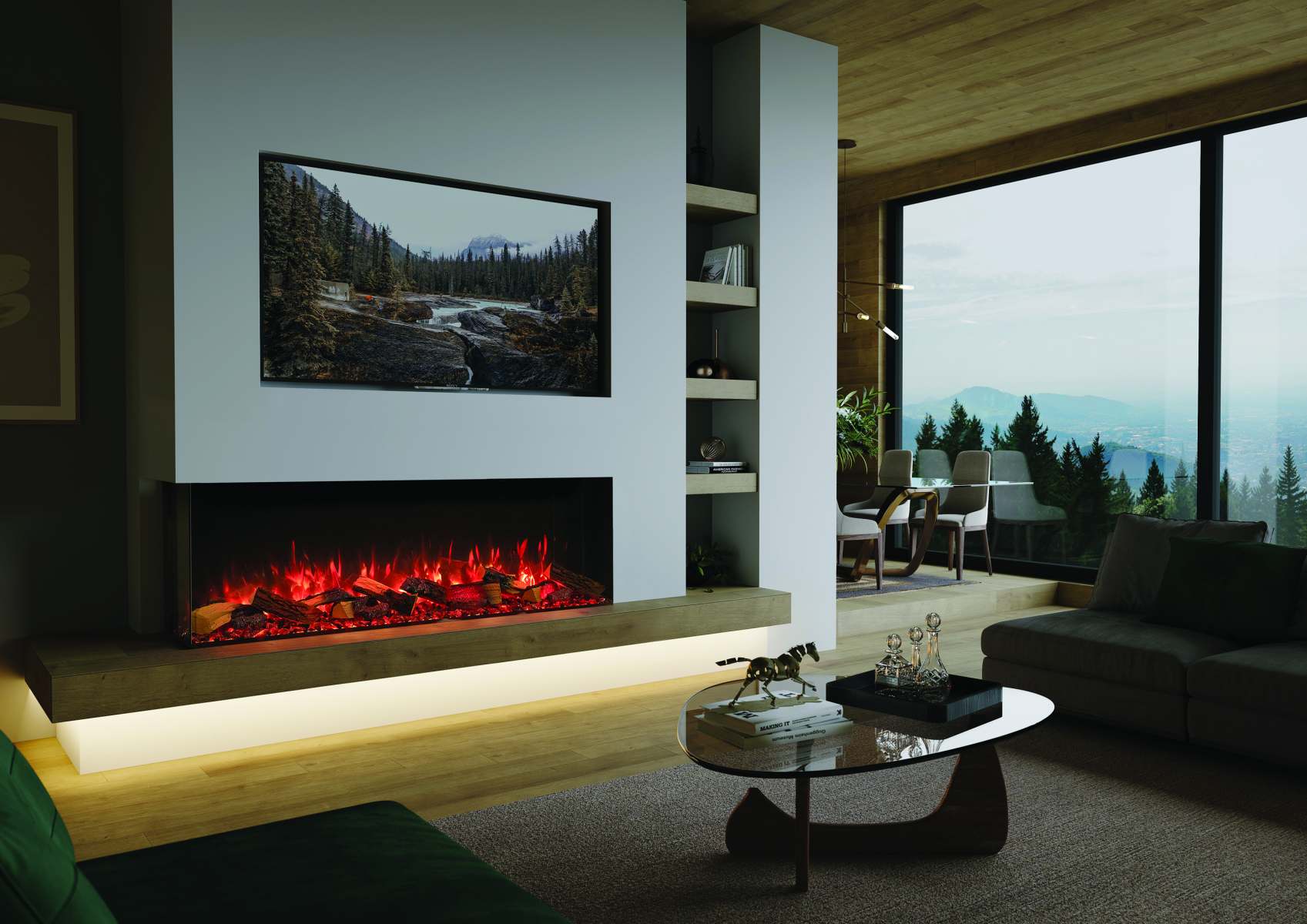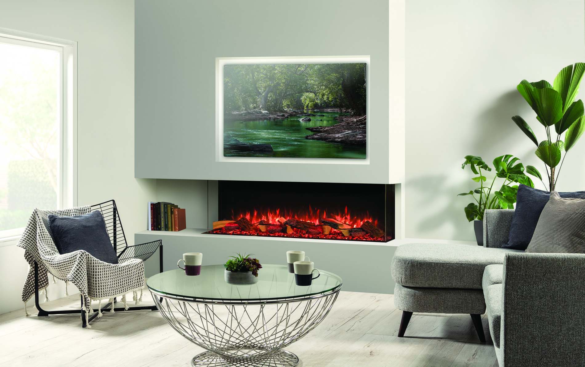 • True-to-life Split Oak or optional Split Silver Birch glowing fuel-effects