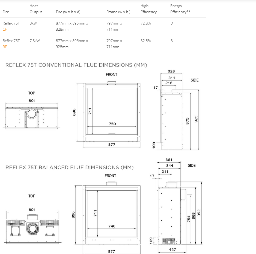 • Linings – Brick effect, Ledgestone Effect, EchoFlame Black Glass, Fluted Vermiculite & Black Reeded
