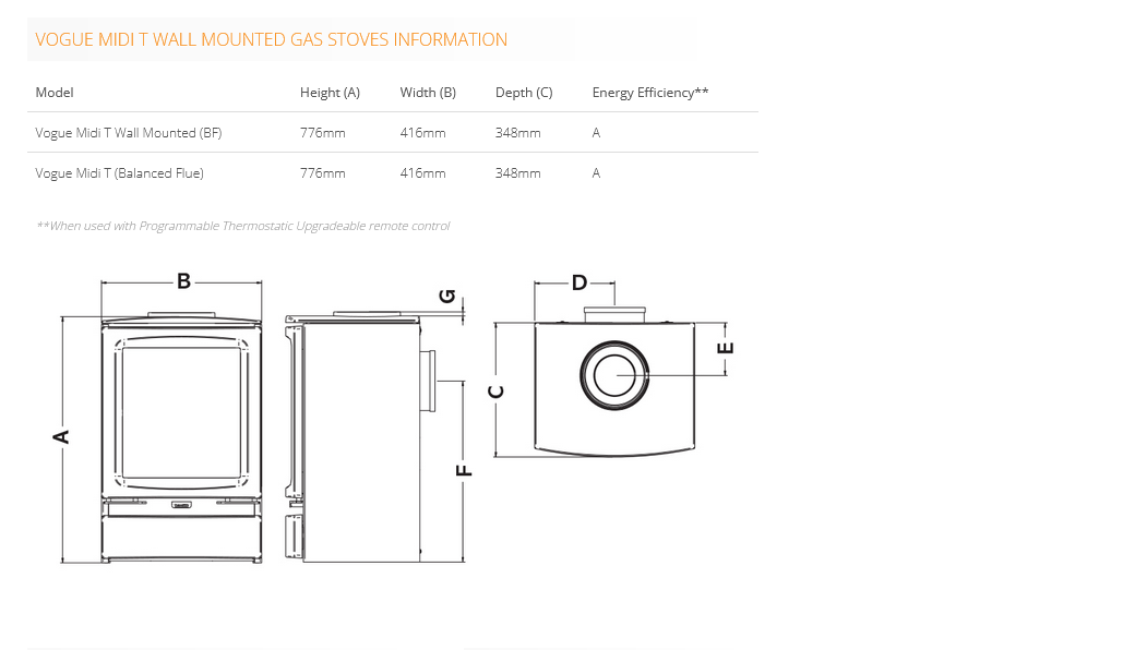 Gazco Vogue Midi T Wall Mounted