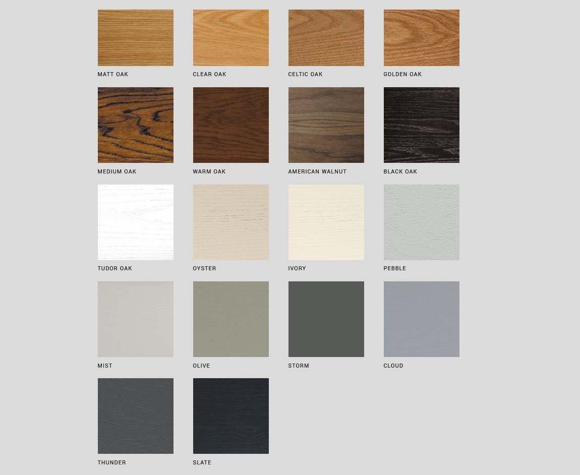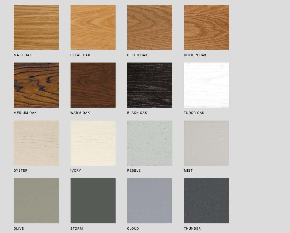 • Available in solid oak colours