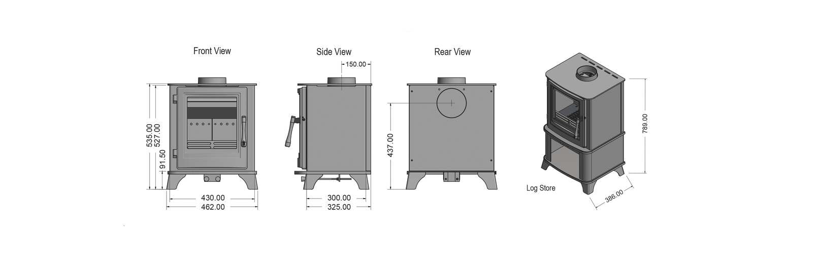• Overall Stove Dimensions (mm): 462 (w) x 535 (h) x 375 (d)